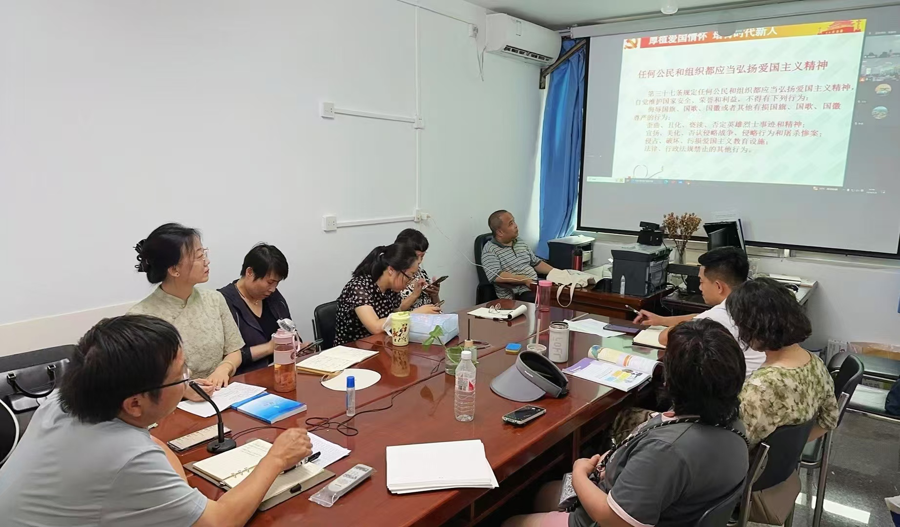 为认真学习贯彻党的二十届三中全会精神、习近平法治思想和习近平总书记关于宪法法治教育的重要指示精神,增强教职工法治观念和爱国情怀,9月4日下午,人文与教育学院党总支在学院会议室,通过线上线下的方式召开全体教职工大会,学院党总支书记买中傲以“厚植爱国情怀,培育时代新人”为主题,为全体教师上了一堂学习《中华人民共和国爱国主义教育法》的专题党课。