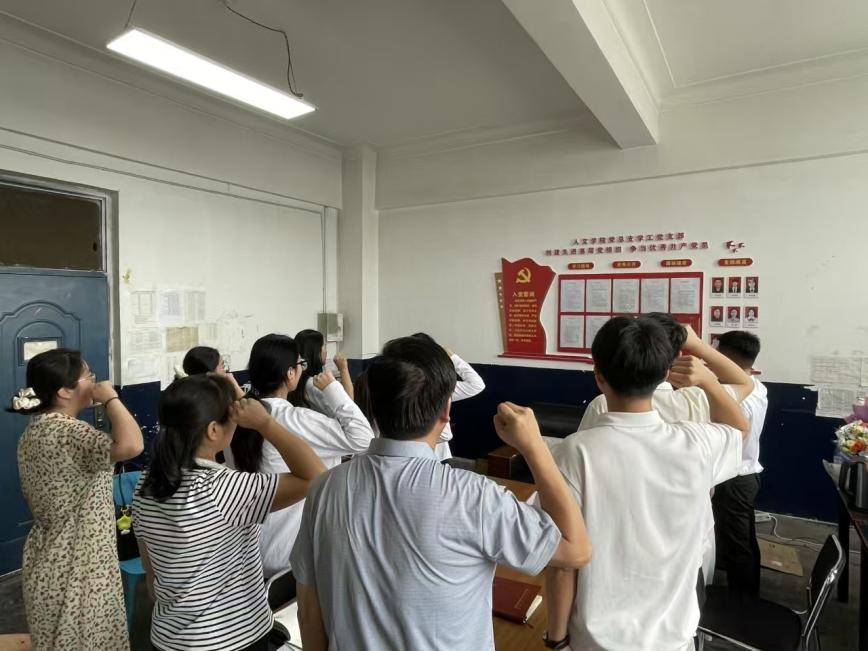 为庆祝中国共产党成立104周年,深入学习贯彻习近平新时代中国特色社会主义思想。2025年7月8日,人文教育学院学工党支部于教学楼707开展“强化引领 聚力前行”主题党日活动,人文教育学院学工党支部书记刘博洋主持,以多元形式激发党员坚定理想信念,勇于担当作为。