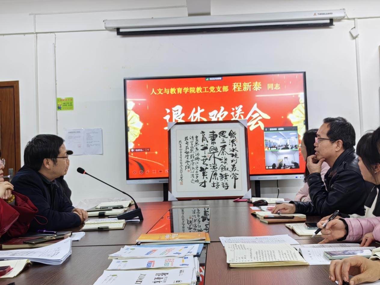 紧接着,我们精心策划了一场温馨而特别的欢送会,为即将退休的老教师程新泰送上祝福与感谢。我院党总支书记买中傲为程老师送上了慰问品和书法作品,回顾了程老师三十年如一日的辛勤付出,赞扬了他无私奉献、爱岗敬业的精神。