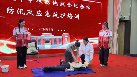近期我省进入多雨时段,降雨过程持续时间长、影响范围广、累计雨量大、防汛形势严峻复杂。为做好防汛安全教育、普及常见应急救护培训基本知识,增强安全防范意识。7月23日下午,陕西能源职业技术学院“能院星火”暑期社会实践团在陕甘边革命根据地照金纪念馆开展防汛及应急救护培训。纪念馆馆务委员、工会主席、保卫科科长王忠雷携纪念馆全体工作人员参加培训。