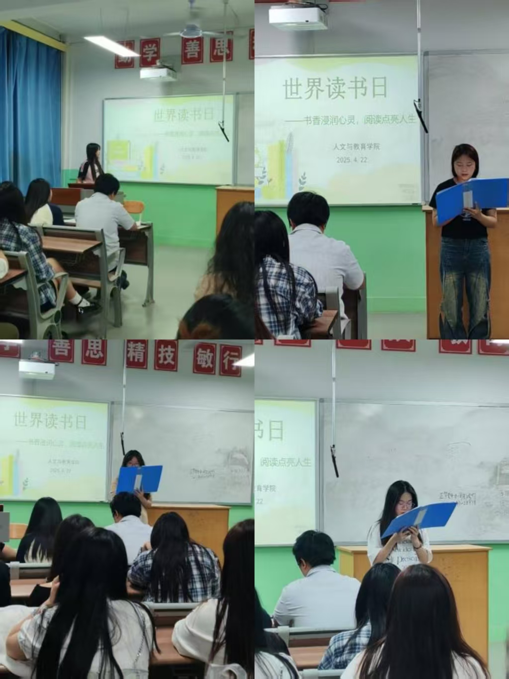 2025年4月23日,人文教育学院在教学楼713教室举办“书香浸润心灵,阅读点亮人生”主题阅读活动。全体学生热情参与,共赴书香之约。活动聚焦碎片化阅读时代深度阅读缺失的现状,以“培养阅读习惯、提升综合素养”为目标,通过多元环节搭建阅读交流平台,引导学生重拾经典阅读。