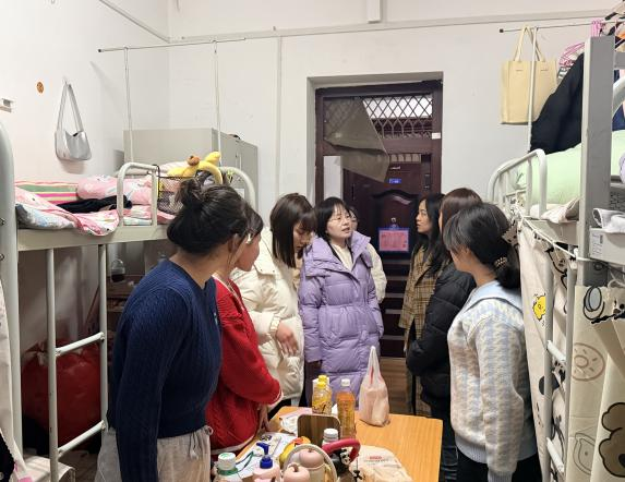 在走访过程中,党总支书记买中傲仔细询问同学们的假期生活、返校适应情况以及新学期的学习计划,耐心倾听同学们在生活和学习中遇到的困难,并给予贴心的建议和帮助。同时老师们还特别关注宿舍的安全与卫生,提醒同学们注意用电安全,保持寝室整洁,营造良好的生活环境。