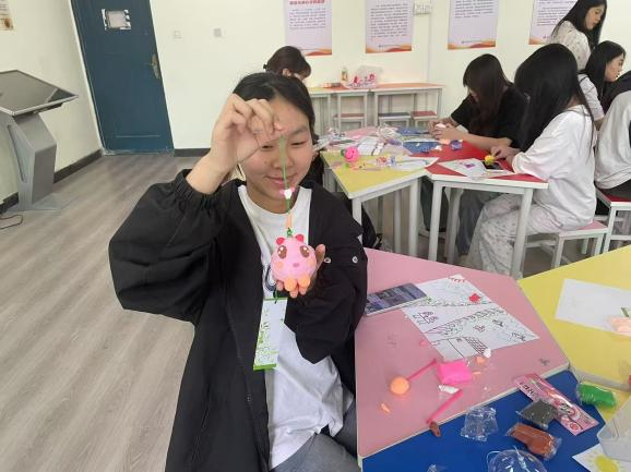 在“风铃制作”环节中,同学们亲手设计并制作风铃,通过选材、组合、调音等步骤,完成独具个性的作品,并在展示环节介绍创作思路和寓意。该活动不仅锻炼了学生的动手能力,还增强了同学之间的沟通与理解,在合作与分享中建立起更加紧密的人际关系。