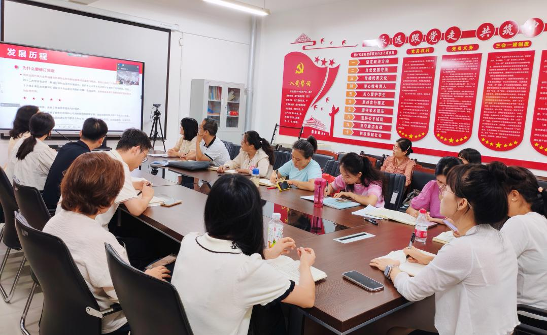 党课伊始,王少华首先强调了党章在党的建设中的重要地位。她指出,党章是我们立党、治党、管党的总章程,是全党最基本、最重要、最全面的行为规范。随后她带领大家分别从党章的概述、党章的发展历程、党的二十大对党章做的重要修改等多个方面展开,让支部党员对党章有了更加深入的认识和理解。她强调党章是党的纪律规矩的总源头,号召全体党员教师要认真学习党章、严格遵守党章,做党章的坚定信仰者和忠实执行者。最后,她要求大家在学习党章的过程中,要做到原原本本学、反反复复学,知其然并知其所以然;要联系实际学、深入思考学,对照党章查找自身存在的问题和不足,切实加以改进和提高。