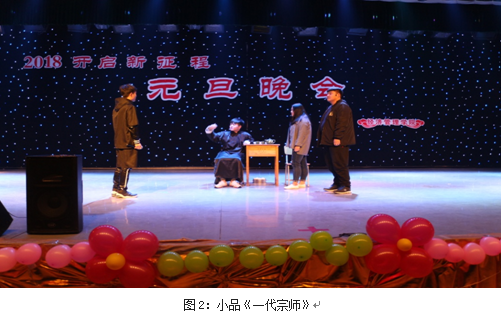晚会在喜庆欢乐的舞蹈《欢聚一堂》中拉开帷幕,晚会节目形式多样、内容丰富,积极向上,师生同台表演,其乐融融。最后,晚会在歌曲《让我为你唱首歌》中落下帷幕。