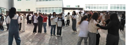 在“大树松鼠”活动当中,每两个同学做大树搭成拱桥形状,中间站一位同学做松鼠,当老师发出大树或小树的口令,同学们需要切换姿势。在嬉笑间,同学们之间的关系拉近了。