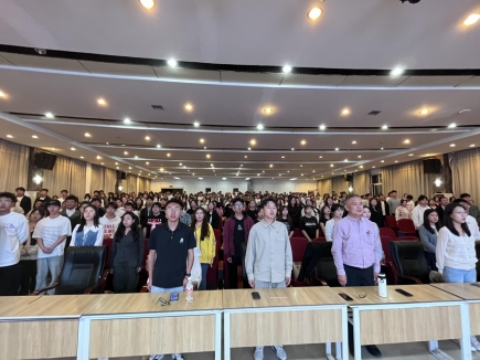 在张书记的深情演讲后,他亲自登台献唱《我爱你中国》,歌声中饱含对祖国的热爱与对党的忠诚,深深打动了在场的每一个人。结合学院国庆假期倡议观看《志愿军,存亡之战》的活动,张书记鼓励大家铭记先烈遗志,立志投身于民族复兴的伟大事业,向烈士致敬并庄严宣誓:“我们继续前进!”这铿锵有力的誓言,彰显了经济管理学院全体师生在党的领导下,不忘初心、牢记使命,为实现中华民族伟大复兴的中国梦而努力奋斗的坚定信念。