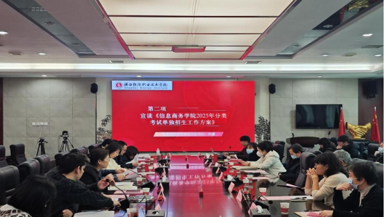 2025年1月14日下午,信息商务学院在办公楼第三会议室召开了教职工大会暨招生工作部署会。此次会议旨在全面分析2025年招生形势,发布招生工作方案,部署招生工作,并就寒假期间学生工作安排以及学院整体工作进行动员,同时强调学院安全稳定工作的重要性。会议由学院党总支书记赵亚玲主持,学院党总支副书记、院长于涛、党总支副书记陈强、综合办、学工办全体成员及各教研室主任、专业带头人、全体教职工参加了此次会议。