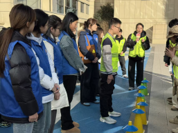 活动现场,志愿者们身着统一蓝色马甲,带领孩子们开展了丰富的互动环节:从整齐划一的暖场律动操,到考验协作的“接力传递”小游戏,再到融入知识科普的趣味飞行棋,每个环节都充满欢声笑语。孩子们穿着亮眼的荧光黄背心,在志愿者的引导下积极参与,既锻炼了团队协作能力,也在游戏中收获了快乐。活动尾声,志愿者、社区工作人员与孩子们共同合影留念,见证了这场公益行动的暖心时刻。