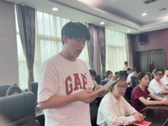 “从入党积极分子到正式党员,党组织的培养让我更深刻理解了‘为人民服务’的分量。”市场2201班毕业生党员任文静作为代表发言。她深情回顾大学时光,分享在党组织引领下的成长蜕变,更以“牢记党员身份,用行动践行誓言”的坚定表态,传递着青年党员的赤诚信念。
