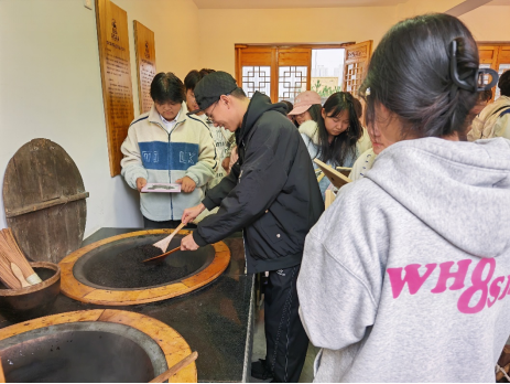之后,师生们参观了“益生源记”仿古作坊,欣赏“茯茶号子表演”并体验非遗筑茶技艺。
