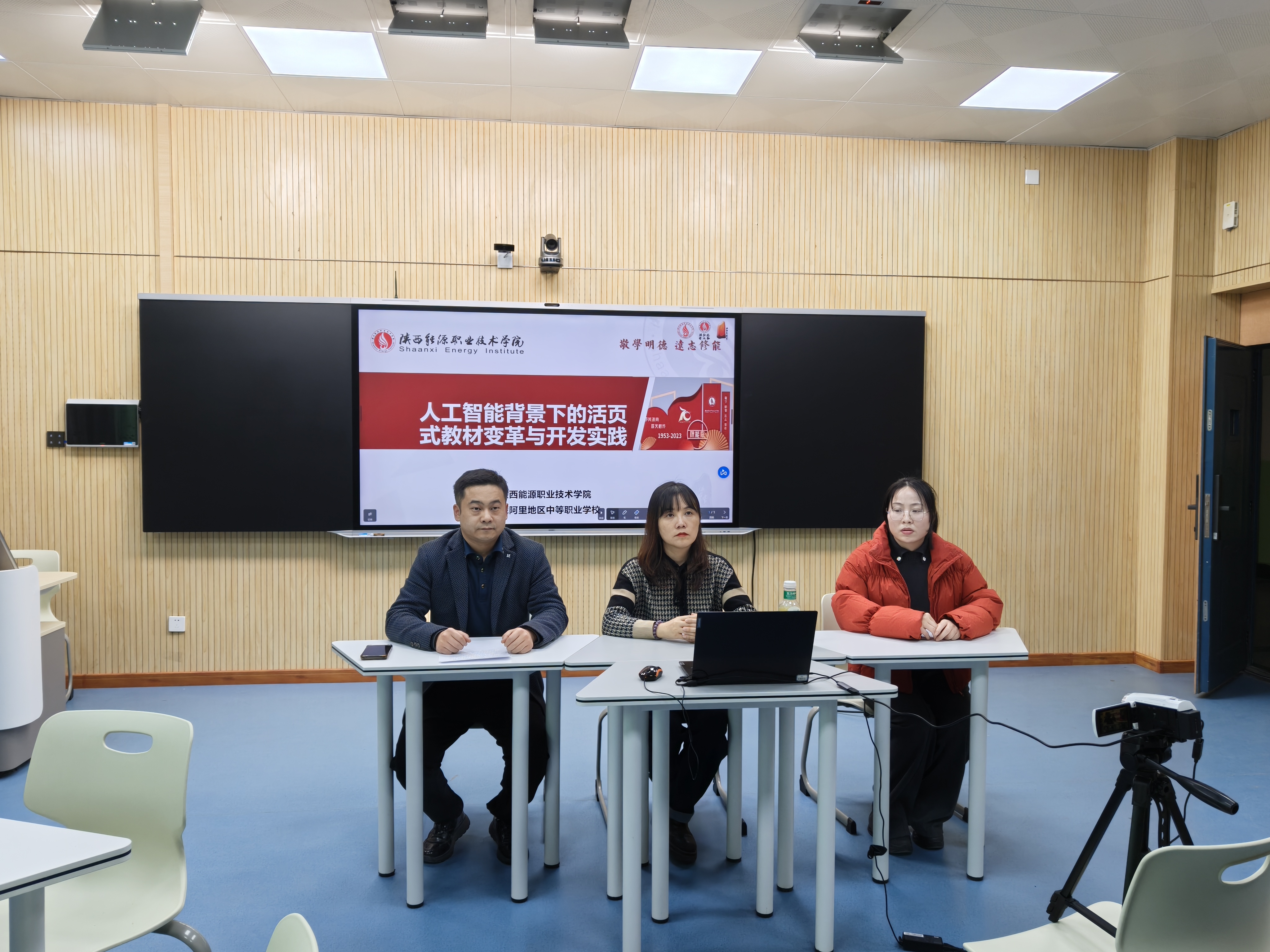 为深入贯彻国家教育数字化战略,推动职业教育教材体系与教学模式深度改革,陕西能源职业技术学院于2025年12月18日在咸阳校区成功举办“关于人工智能背景下的活页式教材变革与开发实践”专题培训。本次培训特邀该校现代康养学院副院长、国家级教学专家赖菁华教授担任主讲与评审专家,旨在结合人工智能时代教育新形态,探索活页式教材的开发路径与实践应用,并为西藏阿里地区教师信息化素养提升提供支持。