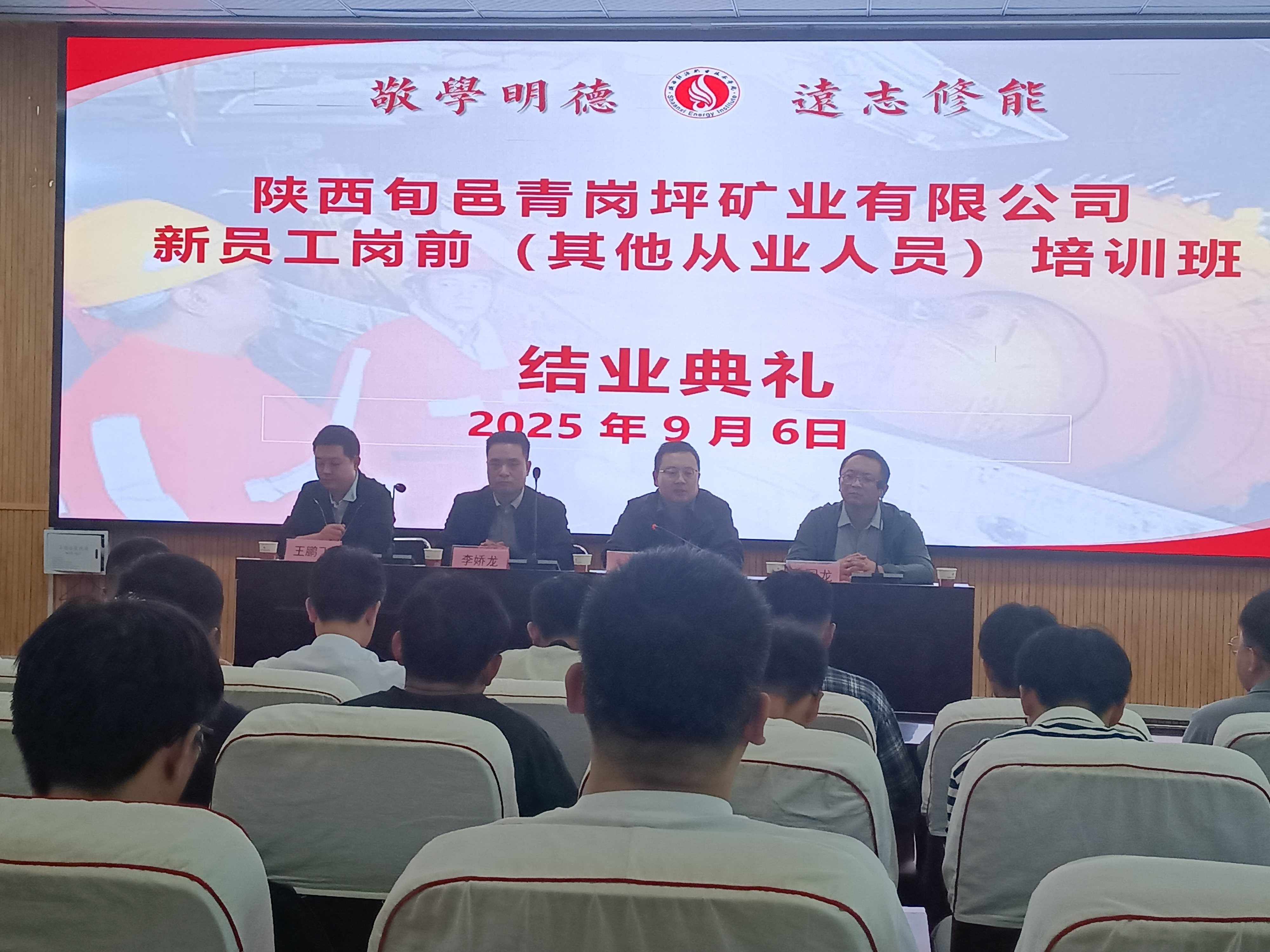 为全面提升新入职员工的职业素养和岗位胜任力、全方位服务我省煤矿企业,9月6日上午,继续教育学院在办公楼文林大讲堂举行新员工岗前培训结业典礼。继续教育学院院长刘金娃、青岗坪煤矿安全副总李娇龙及19名新员工等人共同参加了此次活动。