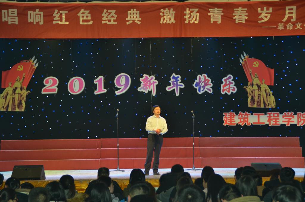 出席本次活动的有建工学院党总支书记曹蔓,院长买中傲,思政部主任董莉利,学院教工党支部支委、学院各部门领导、辅导员班主任老师及学校千余名同学。