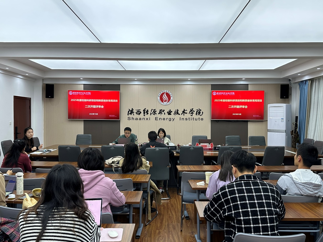 为严格落实“质量为先、以评促改”的科研管理要求,10月11日上午,学校在办公楼二楼会议室组织召开了“2025年度校级科研项目及陕西省体育局项目二次开题答辩会”。会议聚焦9月2日首次开题中“暂缓通过”的15个项目,邀请校内专家韩晓磊、张扬、穆驰三位老师组成评审组,对整改项目进行集中会诊,确保项目研究起点过硬、技术路线可行、成果转化可期。科研信息处负责人、项目团队及青年教师代表共30余人参会。