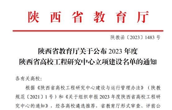 12月18日,陕西省教育厅发布《关于公布2023年度陕西省高校工程研究中心立项建设名单的通知》,我校“智慧矿山物联网技术陕西省高校工程研究中心”成功获批2023年度陕西省高校工程研究中心,这是我校继2022年煤炭与化工产业学院承建的“煤能与绿色开采陕西省高校工程研究中心”之后获批的第二个省级工程研究中心。