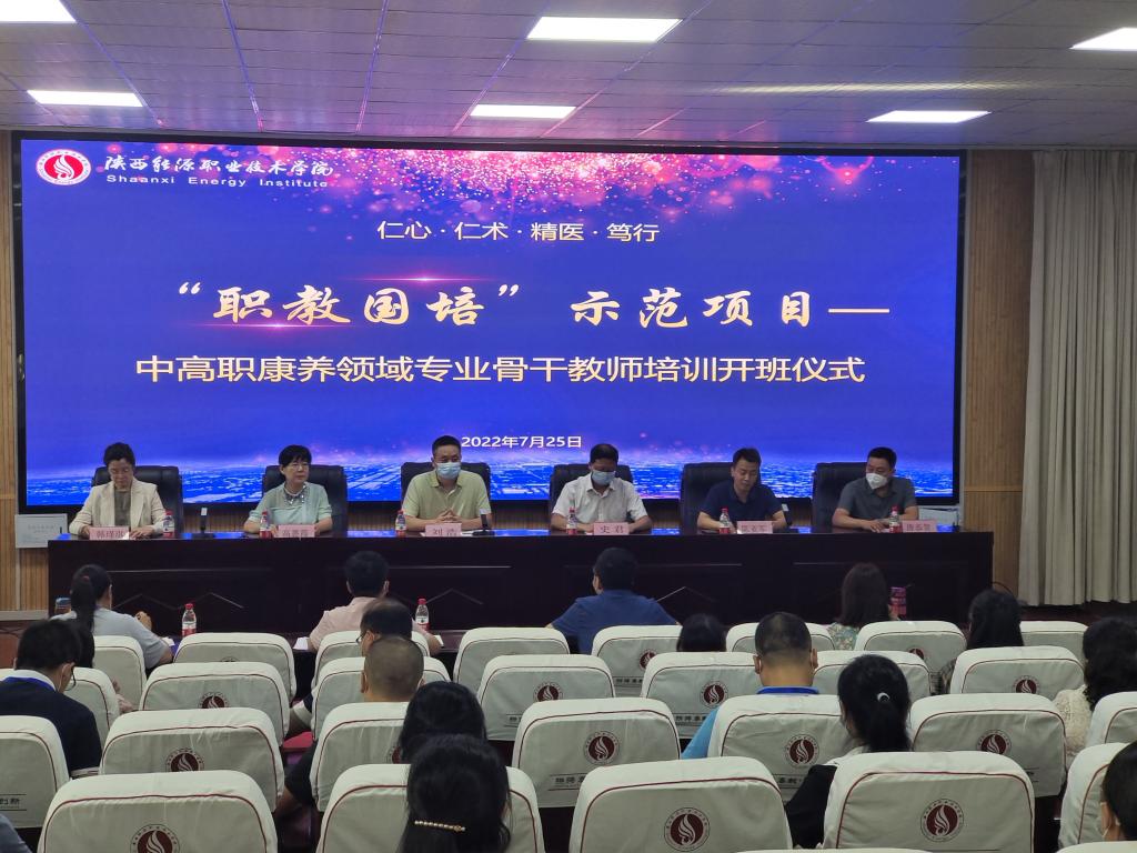 7月25日上午,我校承办的2022年“职教国培”中高职康养领域专业骨干教师示范培训班开班仪式在办公楼四楼文林大讲堂举行。我校副校长刘浩及党政办、人事处、现代康养学院等部门党政负责人,陕煤医养院总经理韩瑾琪,50位参训学员参加仪式,仪式由人事处处长陈亚军主持。