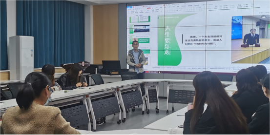 集体备课会上,师洪文围绕《思想道德与法治》课专题二第二讲的内容“保持积极进取的人生态度”进行备课思路的讲解。首先,他介绍了本节课的教学目标、教学重难点、教学方法以及教学策略。其次,课中通过观看《人生态度》的微视频以及提问谈谈你对“摆烂”“躺平”社会现象的认识导入本节课的主题。学生通过头脑风暴、小组讨论、合作探究、展示汇报等活动逐渐理解什么是人生态度?如何面对人生?如何辩证对待人生矛盾?老师再通过层层追问以及学生身边的事例进行分析、总结、提升,使学生可以勇敢面对和正确处理各种人生矛盾,保持认真、务实、乐观、进取的人生态度,在人生历练中成长,履好人生之责,走好人生之路,让青春在为祖国、为人民、为民族、为人类的奉献中焕发出更加绚丽的光彩。