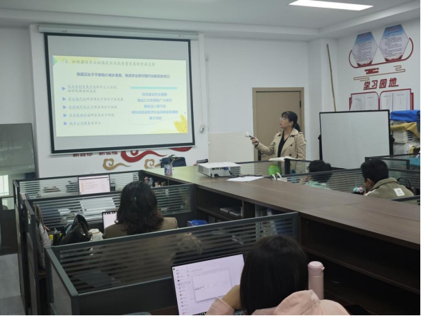为深入贯彻《加快建设农业强国规划(2024-2035 年)》精神,准确把握“形势与政策”课程第四讲《阔步迈向农业强国》专题的核心要义与教学重难点,切实提升课程育人实效。9月24日,马克思主义学院形势与政策教研室在思政课教师教学创新团队工作室召开第二次集体备课会,由教研室主任孙乐主持,杨静主讲,全体专兼职教师参加。