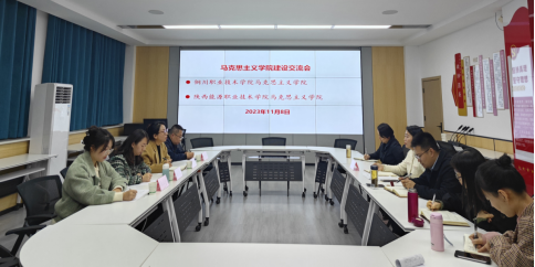 为进一步推进马克思主义学院内涵建设,拓宽建设思路,11月8日上午,铜川职业技术学院马克思主义学院院长王芬、办公室主任杨帆、教研室主任刘杰、教学秘书张玉洁一行4人来我院,双方围绕“马克思主义学院建设及‘大思政课’建设”主题交流座谈,我院副院长高慧主持。