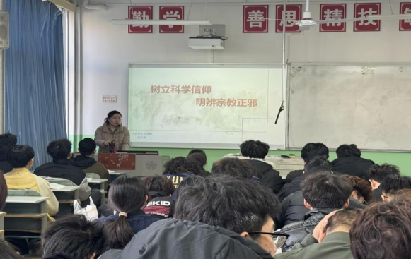 为深入贯彻落实国家关于宗教工作的方针政策,引导广大学生树立科学信仰、增强防范邪教意识,12月12日上午,马克思主义学院史小娟老师以“树立科学信仰 明辨宗教正邪”为主题,在教学楼503教室开展菁英论坛活动,80余名学生到场参加。
