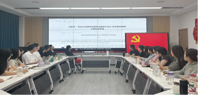 2025年5月28日,陕西能源职业技术学院马克思主义学院党总支教工党支部在博约堂举办了“法润校园 ‘典’亮生活”学习民法典主题党日活动。活动由党支部书记高慧主持,全体教工党员参与,通过集中学习、专题研讨等形式深化对民法典的理解与运用。