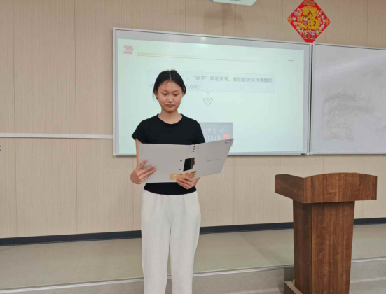 在讨论环节,王甜老师通过解读哪吒在面对众人误解时的坚持,引导学生思考如何在现实生活中接纳不完美的自己,勇敢面对外界的偏见。她指出,哪吒的成长历程就像当代青年在多元文化冲击下实现自我觉醒的缩影,她鼓励大家坚守内心的信念,不被外界标签所束缚。