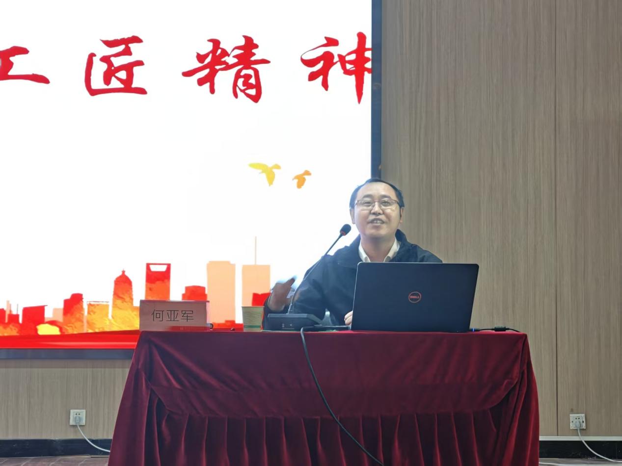 活动开始,何亚军结合自身27年一线数控加工工作经历,分享了从普通技术工人成长为省级劳动模范的职业历程。他结合自身职业历程与实践经历,生动诠释了“爱岗敬业、精益求精”的职业追求。重点讲述了延安时期劳模精神内涵及新时代劳模精神“爱岗敬业、争创一流、艰苦奋斗、勇于创新、淡泊名利、甘于奉献”与工匠精神“执着专注、精益求精、一丝不苟、追求卓越”的核心要义,何亚军还结合技能传承、师带徒等工作实践,进一步阐释了岗位奉献的时代价值。