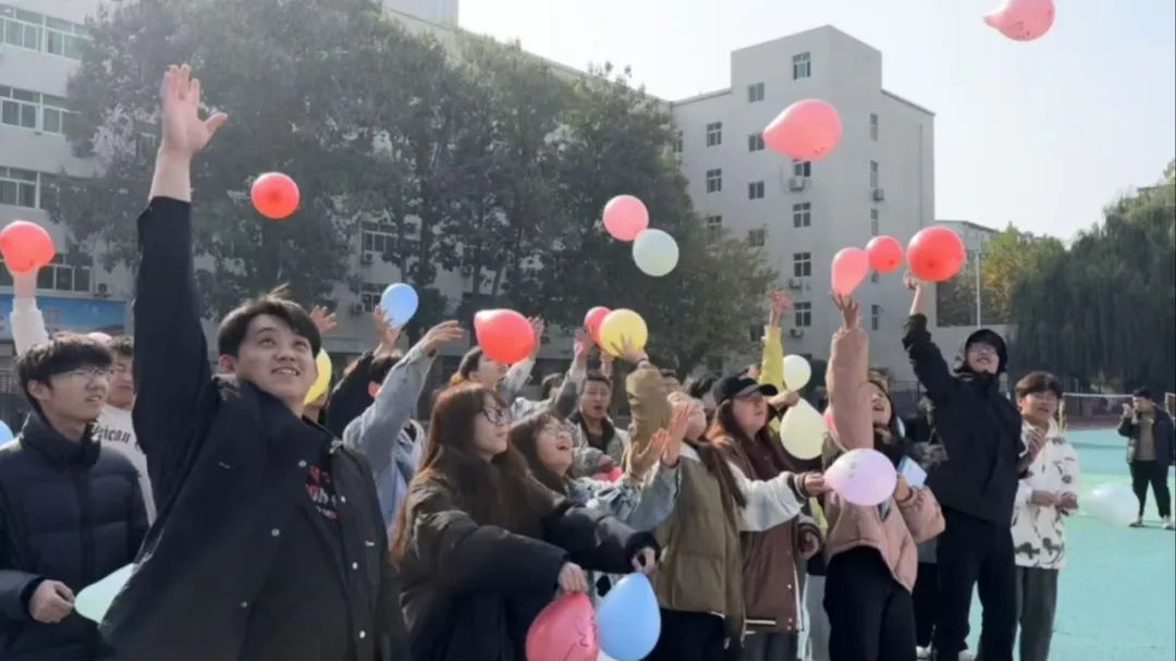 活动进入“告白气球,心里树洞”环节,同学们拿到了由志愿者分发的气球,将自己的负面情绪、烦心事等写在气球上或是在气球上尽情挥洒创意,像是将所有不快情绪释放,每一个气球都承载了大家个性与情感,成为了一个个感情的载体。被放飞的气球,在校园里形成了一道独特的风景线。