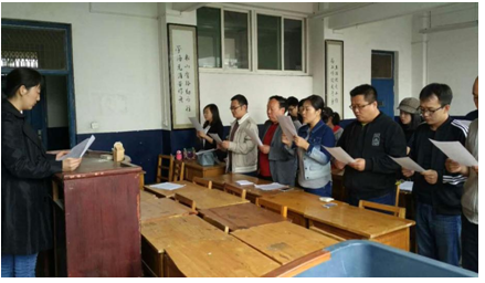自“两学一做”活动开展以来,电子工程系党支部高度重视,组织全体教工党员认真学习、积极践行。4月19日下午,电子工程系教工党支部组织全体教工党员,在一号教学楼406教室签订党员廉洁自律承诺书并宣誓。本次活动由教工支部书记谢娜同志主持,电子工程系全体教工党员参加。