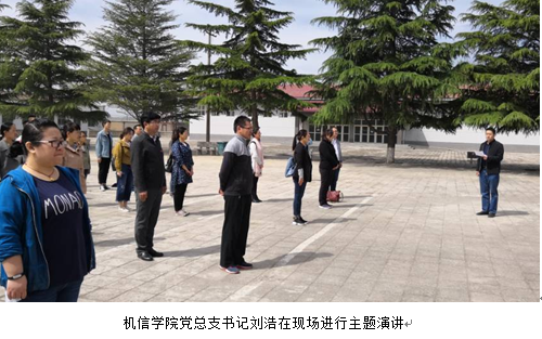 机信学院党总支书记刘浩在现场进行主题演讲,他说道:“我们来到烈士陵园,站在纪念碑前默哀鞠躬、高唱国歌、重温誓词,深切缅怀革命先烈,就是为了向他们致敬,向他们学习,学习他们压倒一切敌人而不被敌人所压倒、征服一切困难而不被困难所征服的英雄气概和革命精神,学习他们胸怀家国、不怕牺牲、舍己为人、无私奉献的崇高品格和民族精神。”“缅怀是为了学习,学习是为了传承,传承需要转化成我们的行动。今天的幸福生活是革命先烈们抛头颅洒热血,用生命和鲜血换来的,我们要倍加珍惜,更要继承和传扬革命先烈的遗志,勇敢担当历史赋予我们的使命和责任。我希望咱们同学们能够以革命先烈为榜样,树立远大理想,珍惜学习机会,努力学好本领,将来做一个对国家、对社会有用的人。咱们教师党员也要以革命先烈为榜样,更加坚定理想信念,牢固树立党员意识,弘扬伟大民族精神,立足本职,无私奉献,为社会主义教育事业贡献自己的力量。”