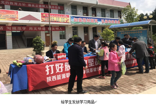 为深入开展“十九大”精神,落实《中共陕西能源职业技术学院委员关于2018年度“特色党日”活动立项的通知》相关文件精神,发挥党员的模范带头作用,4月21日,基础1党支部全体党员赴山区小学开展特色党日活动,为乡村小学爱心捐赠学习用品。