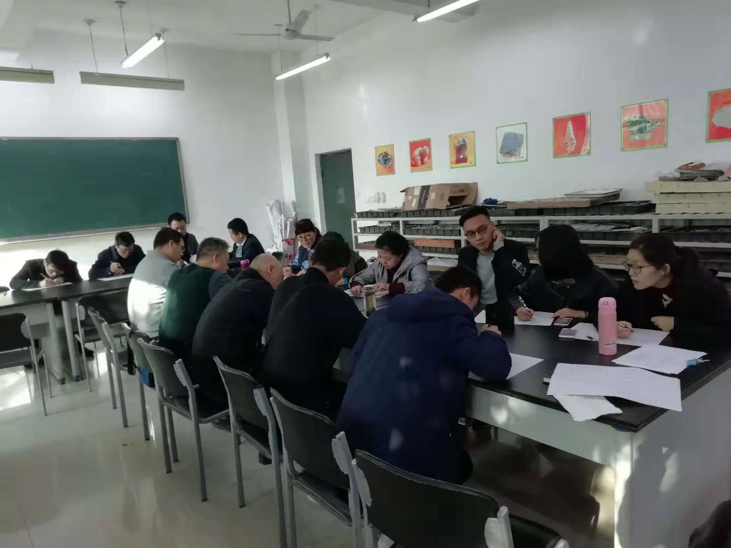 10月24日下午,实践教学1支部17名党员在矿物岩石实训室集体学习了《党员承诺制实施方案(试行)》。实施党员承诺制是加强党员教育和管理的一项重要措施,是提高党员综合素质的有效方法,是加强党风建设和队伍建设的有效措施。以《党章》规定的党员义务、权利为依据,通过党员承诺,形成目标明确、监督严格、奖惩分明的基层党组织管理机制,激发和调动广大党员的工作主动性、积极性和创造性,认真践行党员标准,充分发挥党员的先锋模范作用,增强党组织的凝聚力和战斗力。