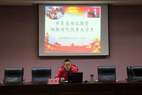 2018年12月12日晚8:00,机电与信息工程学院党总支书记刘浩在实训楼六楼报告厅为机信学院学工党支部全体党员、部分入党积极分子及团学干部讲了一堂题为“不负习近平总书记期望,做新时代优秀大学生”的生动党课。