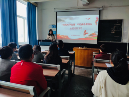 2019年4月12日下午,在教学楼313教室,我院党总支开展“不忘初心学先进 牢记使命勇担当”特色党日活动。除一位党员因病请假外,其余党员全部参加。活动由党总支副书记李海霞主持。