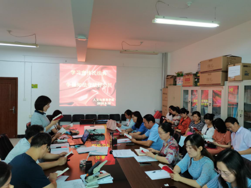 窗体顶端窗体顶端根据学校《关于开展“民法典进学校”活动周相关活动的通知》 (陕能院党宣[2020]5号)安排,9月16日下午,人文与教育学院全体教职工在党总支书记于秋玲的主持下进行了集中学习。