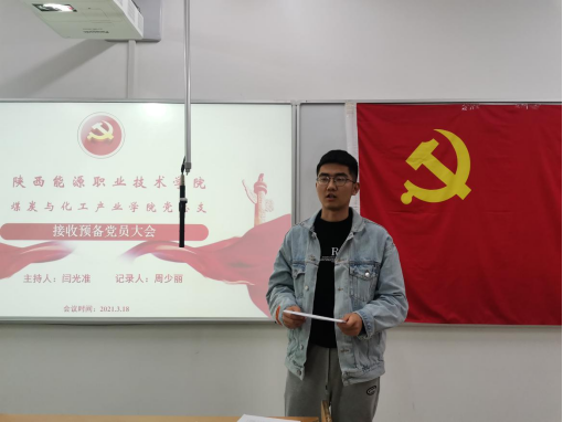 为了进一步健全和完善党总支组织,增强党总支生机与活力,2021年3月18日,煤炭与化工产业学院党总支在培训楼602召开了接收预备党员大会。参加此次会议的有:李鹏老师、李晨阳老师、李瑞琪老师以及全体预备党员。会议由闫光准老师主持,周少丽老师负责记录。