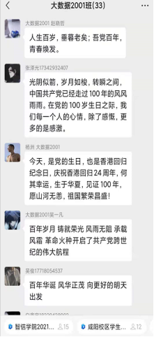 2021年7月1日上午8点,智信学院党总支织全体师生分别在办公楼509、教学楼514、各班教室,观看庆祝中国共产党建党100周年大会的实况转播。