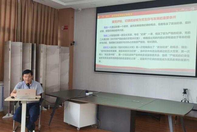 房朋从纪律建设的百年历程和经验启示开题,列举丰富史实案例,详细阐述了建党之初到新时代以来党的百年纪律建设史,带领大家回顾了“三大纪律八项注意”的起源与发展,讲解了延安时期是我们党逐步走向成熟的时期,介绍了三次纪律教育:一是反对张国焘分裂活动进行“四个服从”教育;二是通过黄克功事件进行严明纪法教育;三是针对处分刘力功进行组织纪律教育。