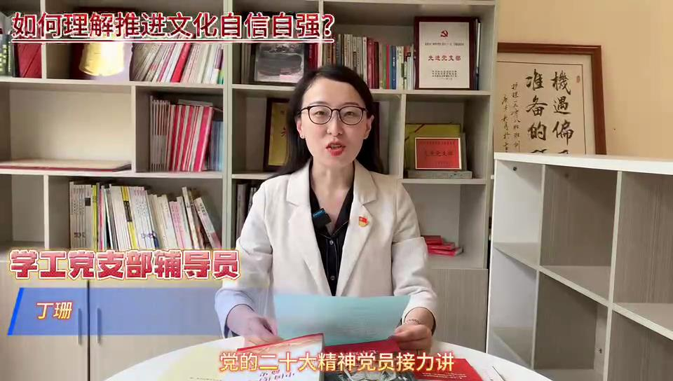 为深入学习宣传贯彻党的二十大精神,深刻领悟党的二十大报告的精髓要义,根据护理学院学工党支部四月主题党日活动安排,组织10名教师党员录制党的二十大精神“党员接力讲”微视频,党支部通过此项专题活动,带领大家围绕学习宣传贯彻党的二十大精神这条主线,进一步激发奋进新征程、建功新时代的强大精神能量。本期推送三讲:《如何理解推进文化自信自强?》—学工党支部教师党员丁珊,《如何理解新时代新征程中国共产党的使命任务?》—学工党支部教师党员冯艳蓉,《如何理解培养什么人、怎样培养人、为谁培养人是教育的根本问题?》—学工党支部教师党员王嫒璐。