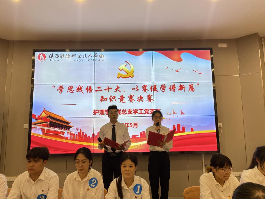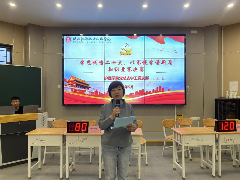 为进一步学习宣传贯彻党的二十大精神,持续深化拓展党史党章学习教育成果,激发青年学子爱党学党热情,5月17日下午,护理学院党总支学工党支部于临潼校区105阶梯教室组织开展“学思践悟二十大,以赛促学谱新篇”知识竞赛,护理学院党总支书记王瑜,党总支副书记仵卫民,学工党支部全体教师党员及部分学生代表共计150余人参加。