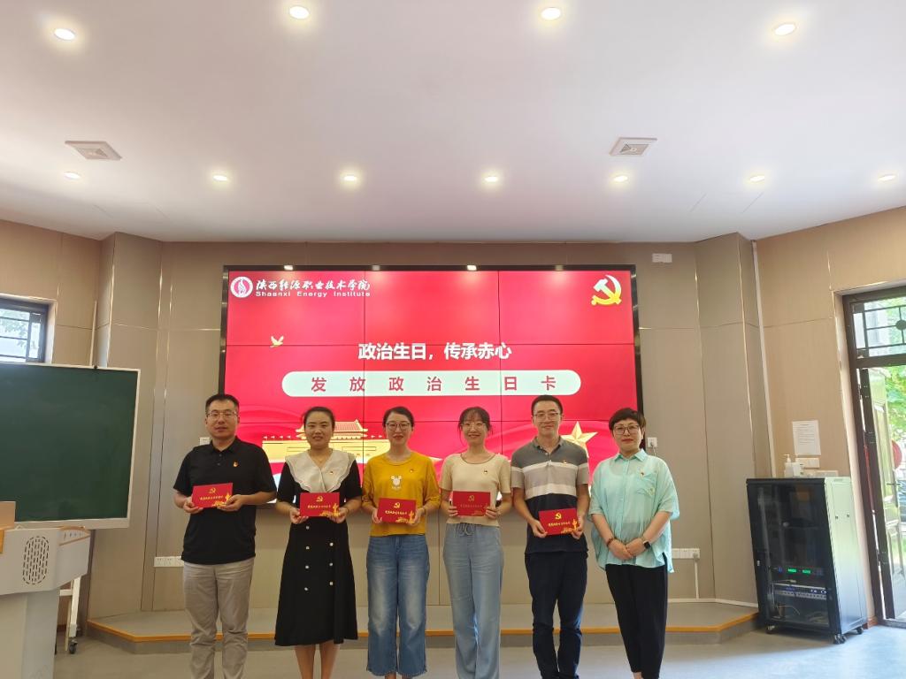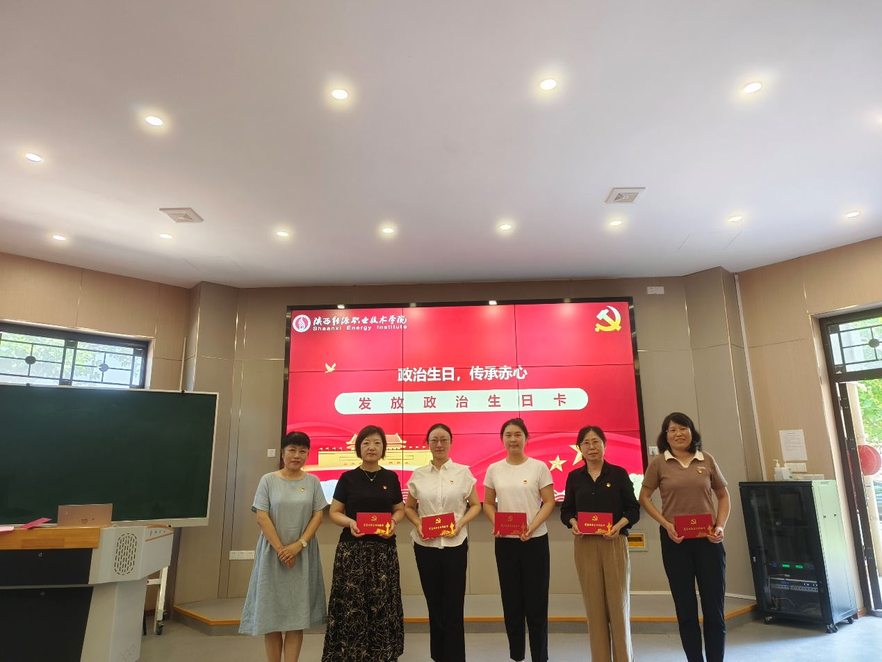 党员“政治生日”活动,不仅是对党员的一种激励,更是对党员身份意识的进一步强化,王瑜、仵卫民等为全体教师党员发放了精心准备的党员政治生日纪念卡,引导全体党员同志始终不忘初心、牢记使命,奋发作为。“百年党史 百年辉煌”,在本次主题党日活动中,大家通过“看图猜党事”党史趣味互动,一起重温了党的百年党史。最后,全体党员同志一起与党旗共合影,共同表达了对党的祝福。