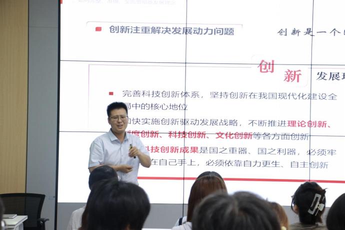 随后,邵临光以“新发展理念助推高质量发展”为主题展开讲座。他深入解析了新质生产力的概念及其在高质量发展中的重要性,带领大家一起学习了习近平总书记关于新质生产力和高质量发展的重要论述。他提到,习近平总书记多次指出,创新是引领发展的第一动力,是建设现代化经济体系的战略支撑。这充分体现了党中央对新质生产力的高度重视,以及对高质量发展的坚定决心。