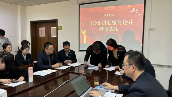 随后,王小虎等16名预备党员向党组织汇报预备期思想、学习和工作情况,表明转正意愿。入党介绍人对其在预备期的表现进行评价,支部党员充分讨论并无记名投票表决,一致同意16名同志按期转为中共正式党员。