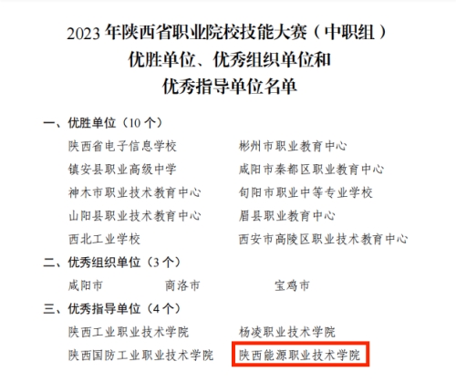 近日,由省教育厅组织开展的2023 年陕西省职业院校技能大赛成绩公布。我校139名选手在31个赛项中荣获一等奖11项、二等奖16项,三等奖28项,共计55个大赛奖项的优异成绩,同时我校被授予“高职组”优秀组织单位,“中职组”优秀指导单位,实现了在省级技能大赛层面的新突破。