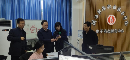 随后,朱忠军一行来到“电子商务”国家级赛项培训现场,他仔细询问了该赛项的参赛选手数量,使用软件的情况,以及培训准备工作的进展并与参赛学生亲切交流,鼓舞他们努力备赛,学校会及时解决大赛培训过程中存在的问题,希望他们加强训练,争取好成绩。