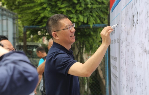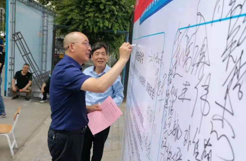党委副书记任向明在宣传展板上签名