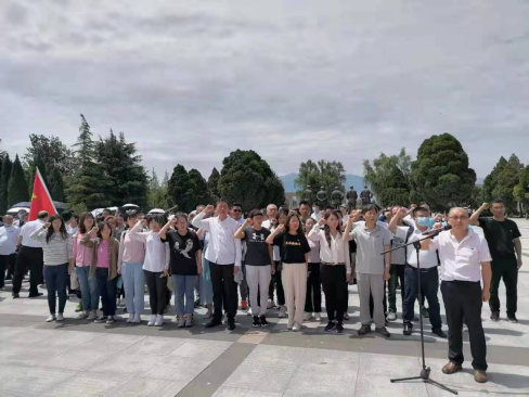 在扶眉战役纪念馆,党员教师代表向革命烈士纪念碑敬献花篮,集体默哀,由实践教学管理处副处长、实践教学1党支部书记杨勇同志领誓,在党旗的见证下,大家高举右手,郑重地重温入党誓词。 各位党员在讲解员的带领下详细了解扶眉战役发生的背景、过程和重大历史意义,深切感受到解放军战士不屈不挠的革命精神。接受爱国主义教育洗礼,进一步增强党性修养,坚定社会主义信念和共产主义思想,牢记全心全意为人民服务宗旨。