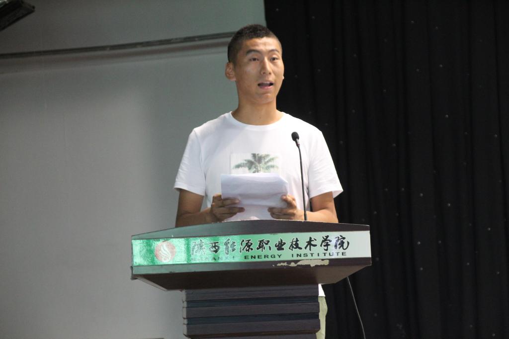 综合办主任张继军作为教师代表发言,他代表全体教师欢迎各位新同学的到来,希望同学们能够珍惜彼此之间的同学情、舍友情,在陕能院度过三年美好的大学时光。