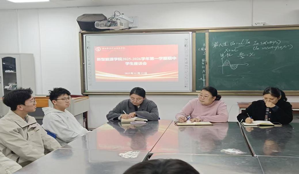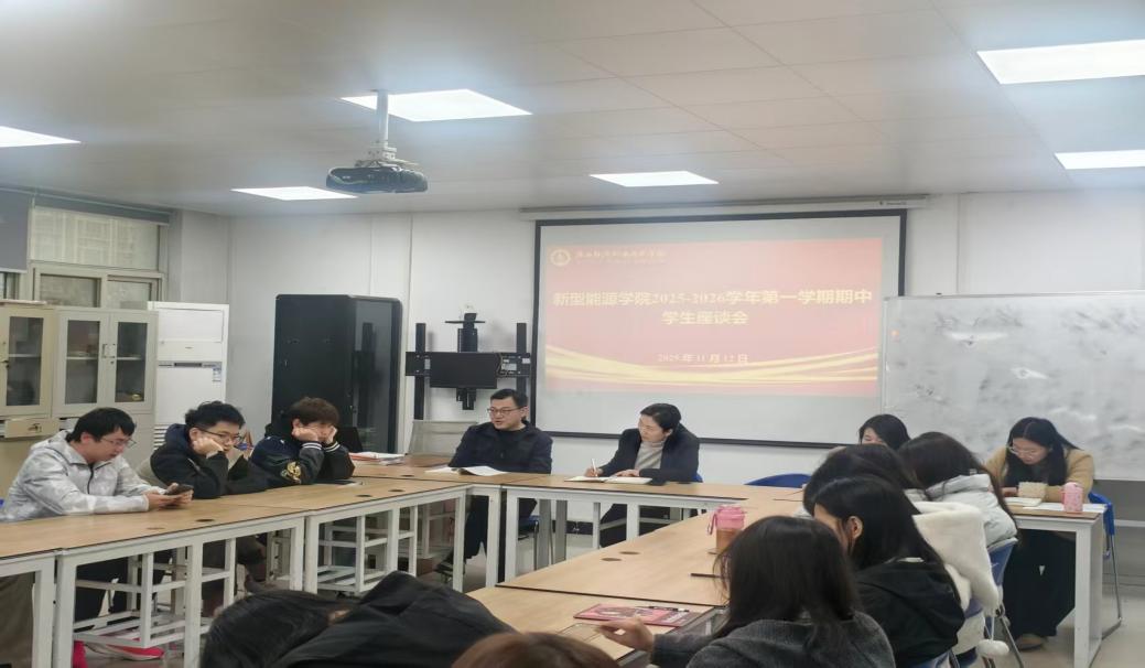2025年11月12日下午,新型能源学院在第一实训楼404、405教室组织召开2025-2026学年第一学期期中教学检查学生座谈会。会议由党总支副书记冯帅、副院长黄俊梅分组主持,教师代表以及2024级、2025级学生代表共同参加。